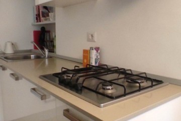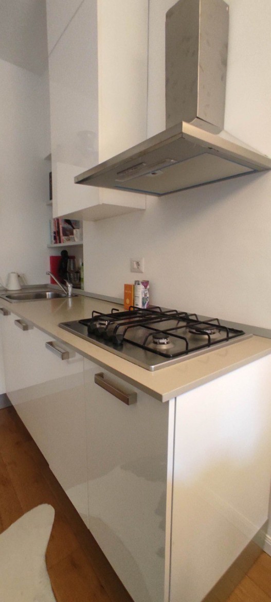 L'appartamento, luminoso e ben distribuito, è composto da: ingresso su un accogliente soggiorno con cucina a vista completamente arredata, disimpegno, bagno con doccia, una  camera da letto con cabina armadio. All'interno della cabina armadio sono già predisposti gli attacchi per la lavatrice.