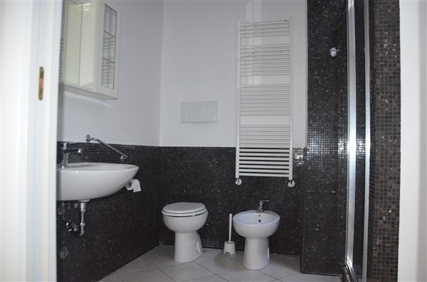 La zona notte si compone di una camera matrimoniale ed una camera singola che può essere adibita a studio. Completa l'unità immobiliare il bagno finemente rifinito con mosaico scuro che richiama la tinta del soffitto dotato di servizi e generosa doccia anch'essa rifinita a mosaico con vetro doccia di pregiata finitura.